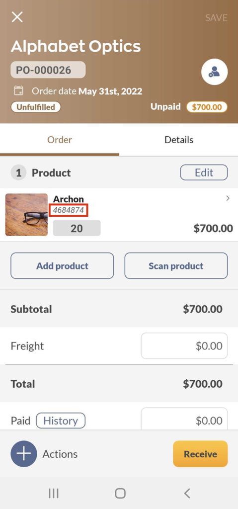 A key difference between Product name and SKU is that the SKUs will be in italics, and you can’t edit these from an order.