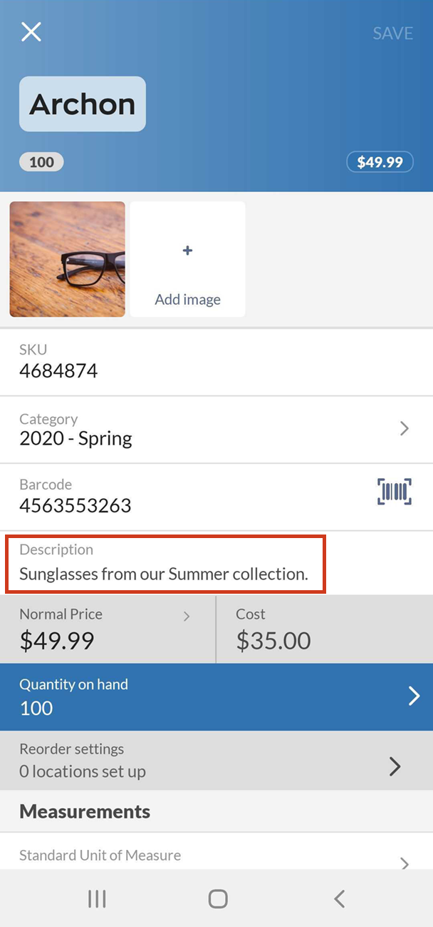 When you have the product name and description chosen, it’ll bring the Description field further up on the mobile list.