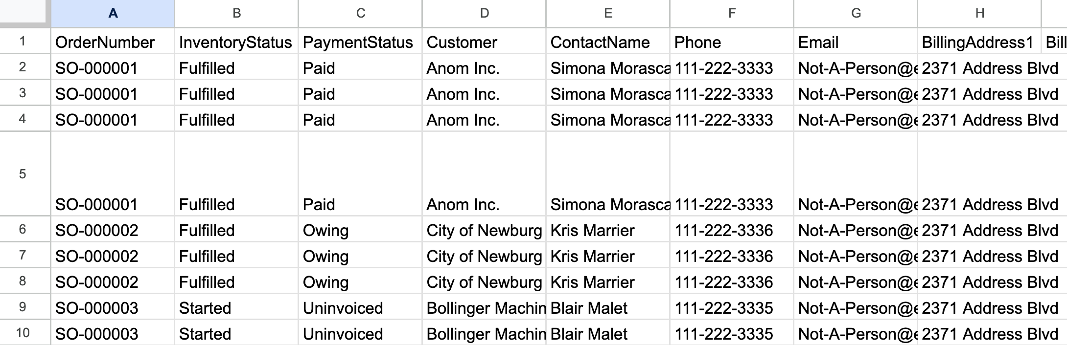 Sales order CSV example
