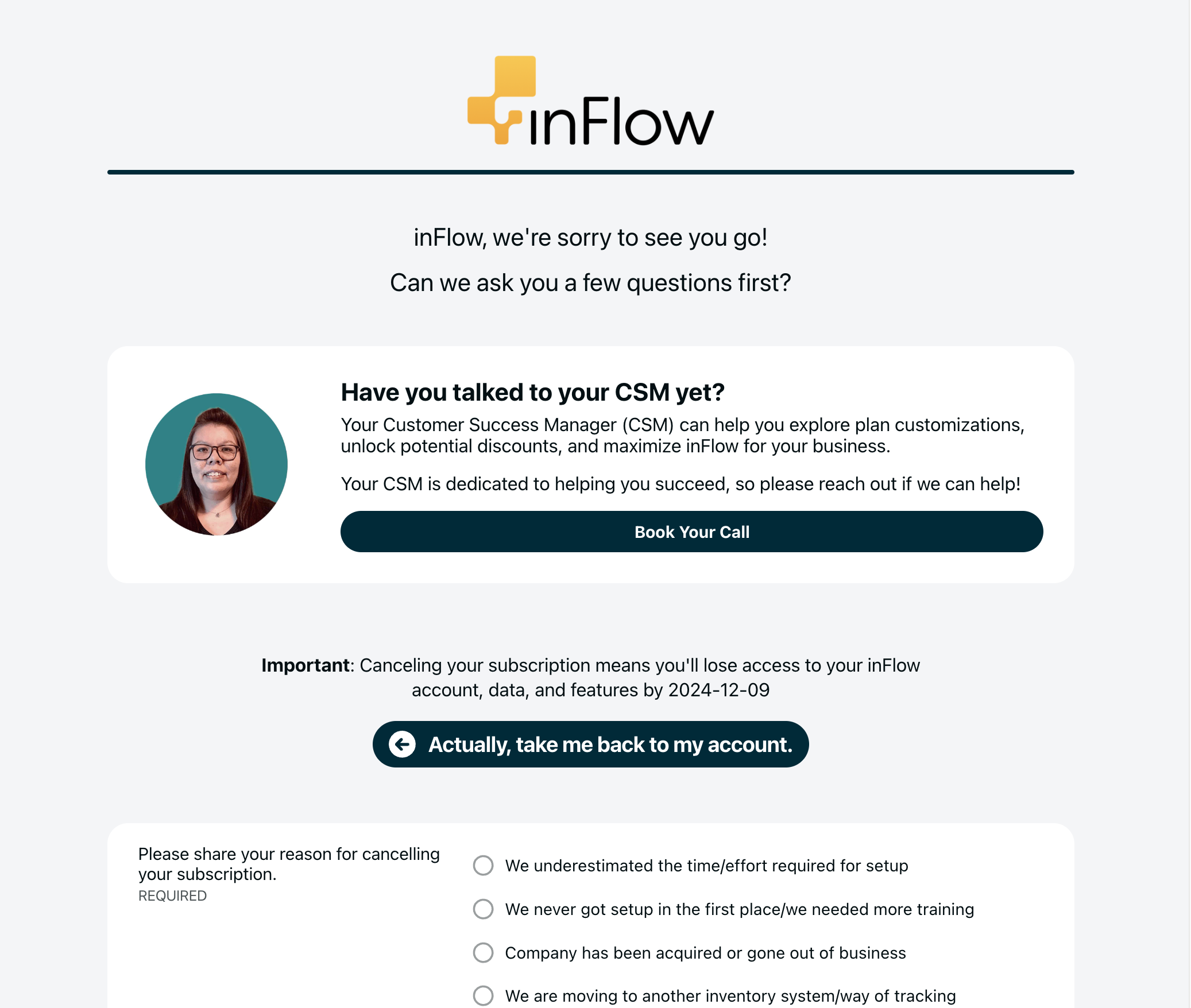 So you’re looking to cancel your inFlow subscription? Well, before you do, let’s chat about a few important things to make sure that’s the right option for you and your team!