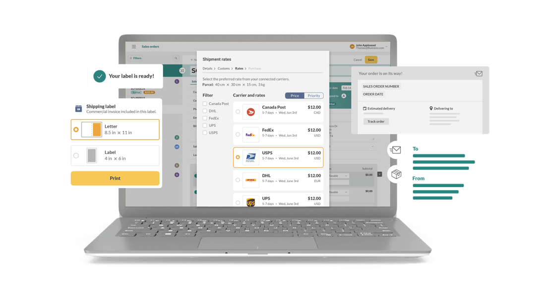 When it’s time to ship an order, inFlow can speed this workflow up, too. Thanks to a partnership with EasyPost, you can quickly compare carrier rates from USPS, UPS, DHL, FedEx, and more.