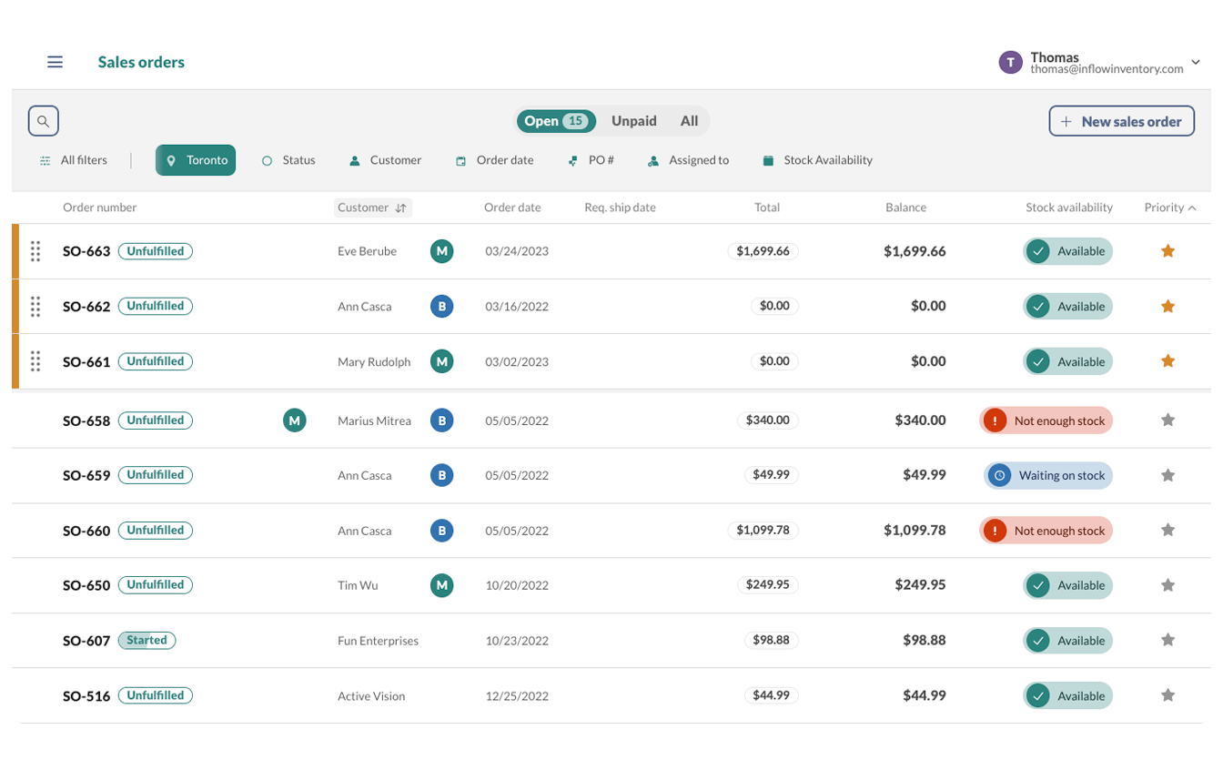 With inFlow you’ll know exactly which orders you can fulfill now, or which ones you may need to reorder for. You can even prioritize orders and sort them by quickly dragging and dropping.